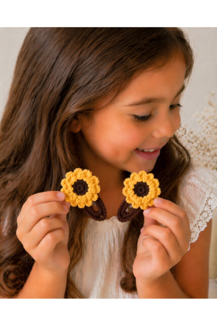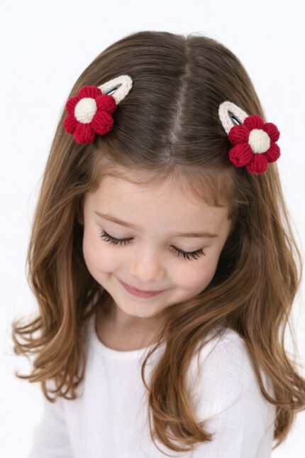 %100 Pamuk El Yapımı Örgü 2’li Çiçek Çıtçıt Toka – Bebek & Kız Çocuk Saç Aksesuarı