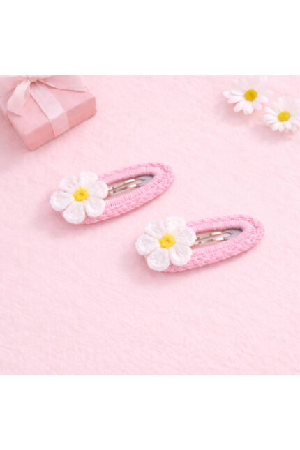 %100 Pamuk El Yapımı Örgü 2'li Çiçek Çıtçıt Toka – Bebek & Kız Çocuk Saç Aksesuarı