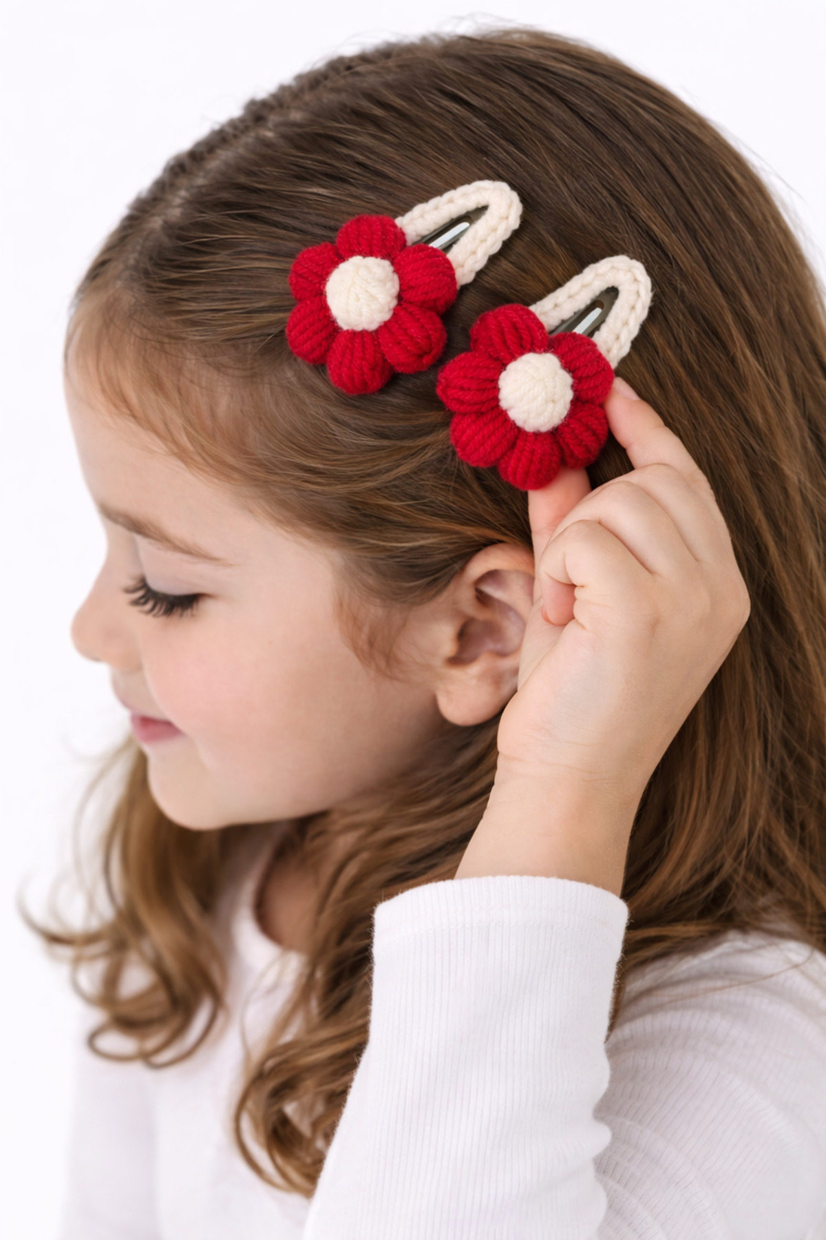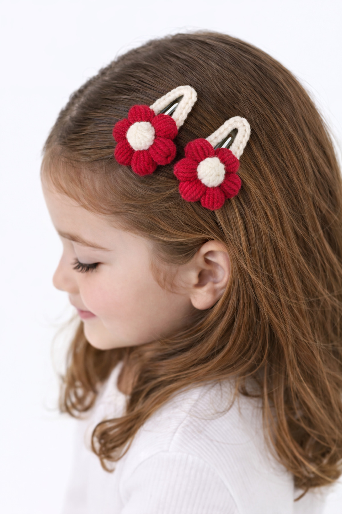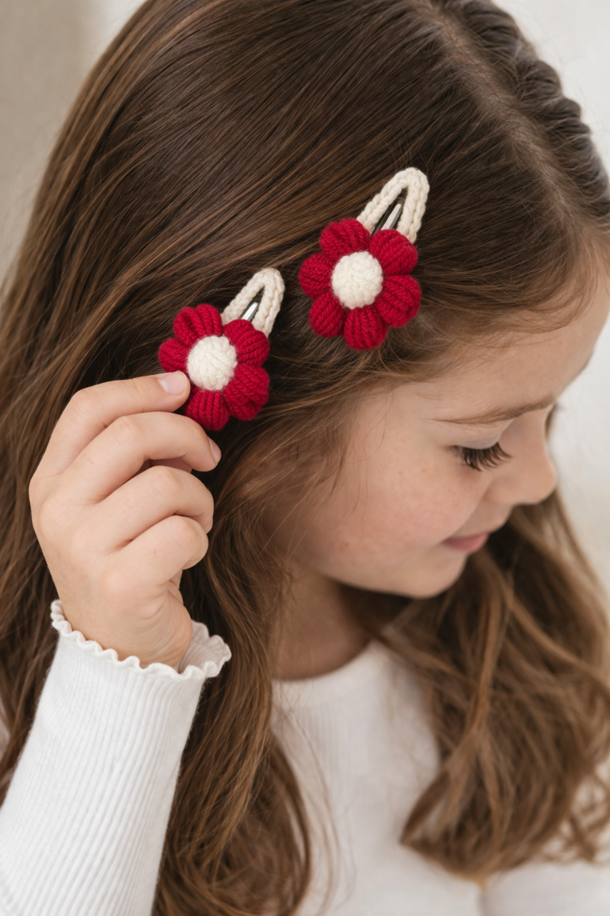 %100 Pamuk El Yapımı Örgü 2’li Çiçek Çıtçıt Toka – Bebek & Kız Çocuk Saç Aksesuarı