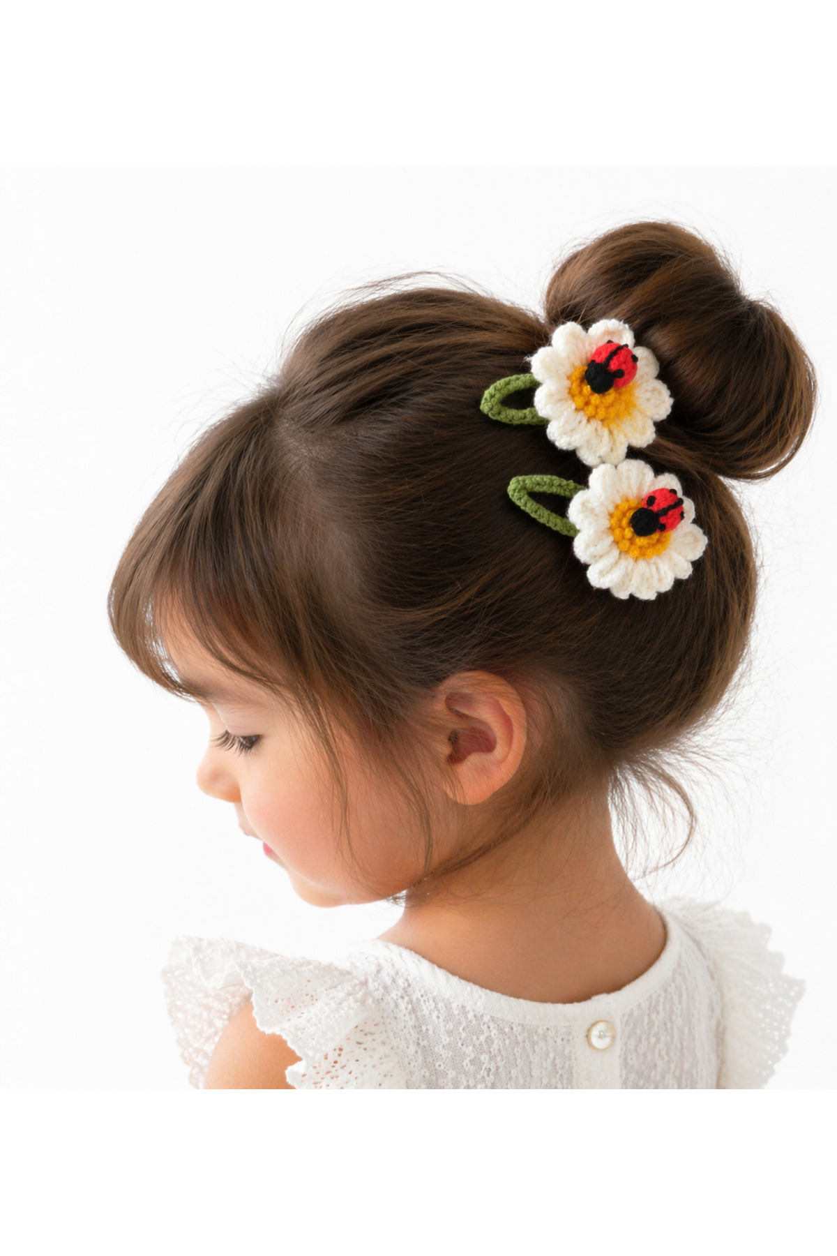 %100 Pamuk El Yapımı Örgü 2’li Çiçek Çıtçıt Toka – Bebek & Kız Çocuk Saç Aksesuarı