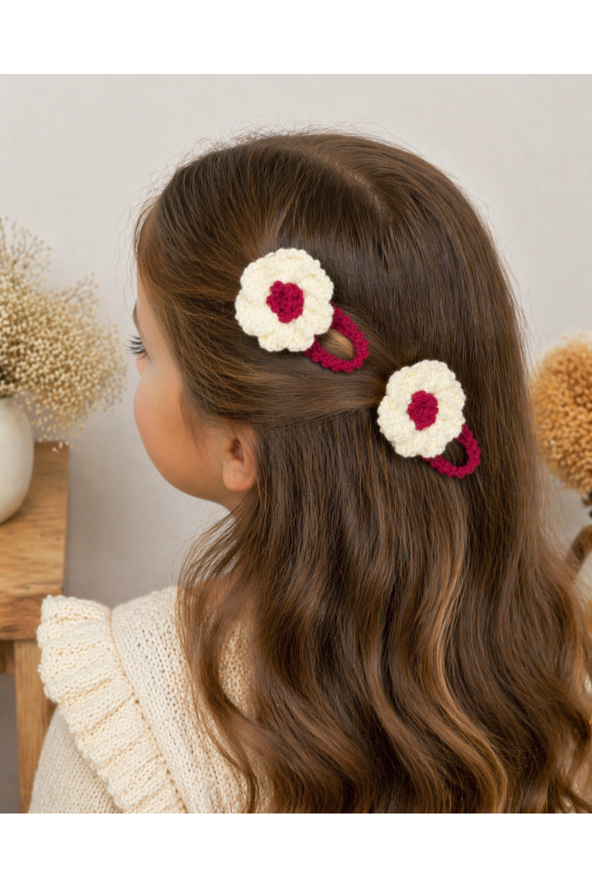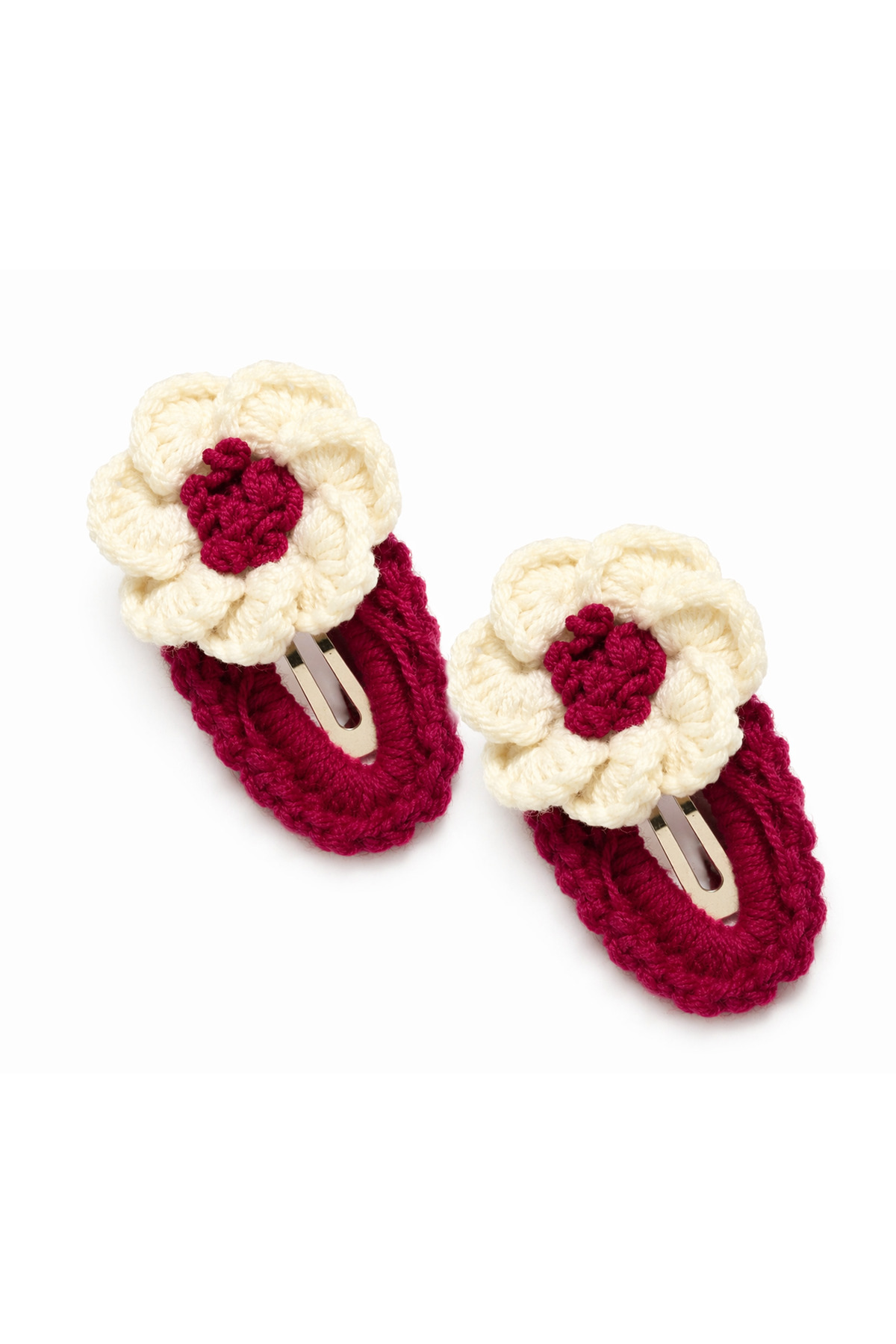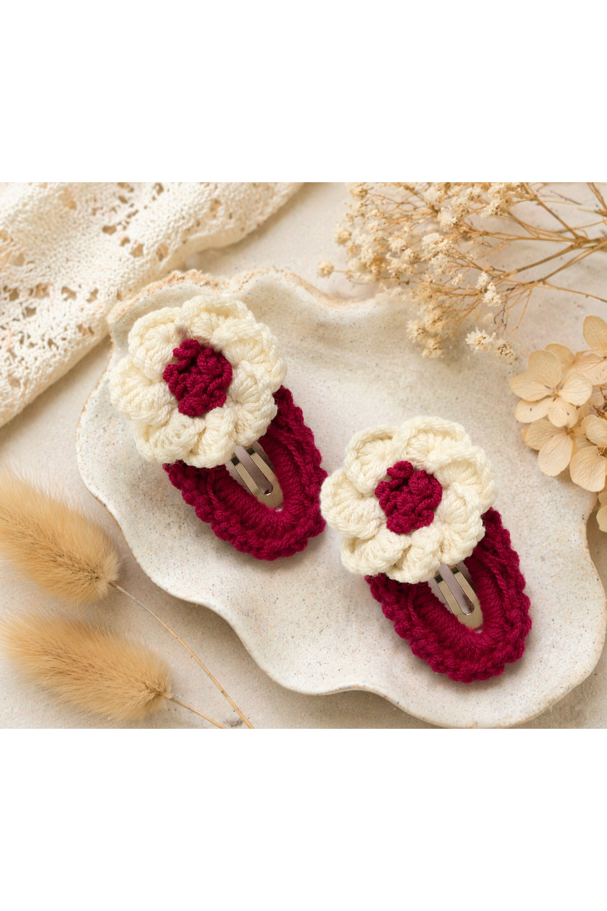 %100 Pamuk El Yapımı Örgü 2’li Çiçek Çıtçıt Toka – Bebek & Kız Çocuk Saç Aksesuarı