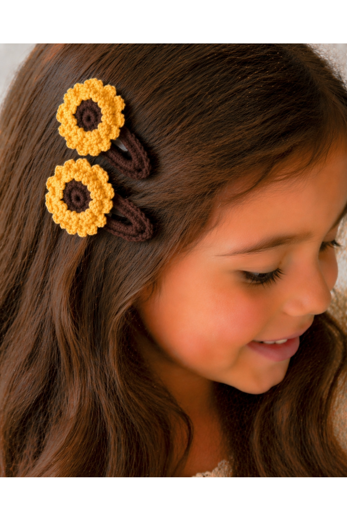 %100 Pamuk El Yapımı Örgü 2’li Çiçek Çıtçıt Toka – Bebek & Kız Çocuk Saç Aksesuarı