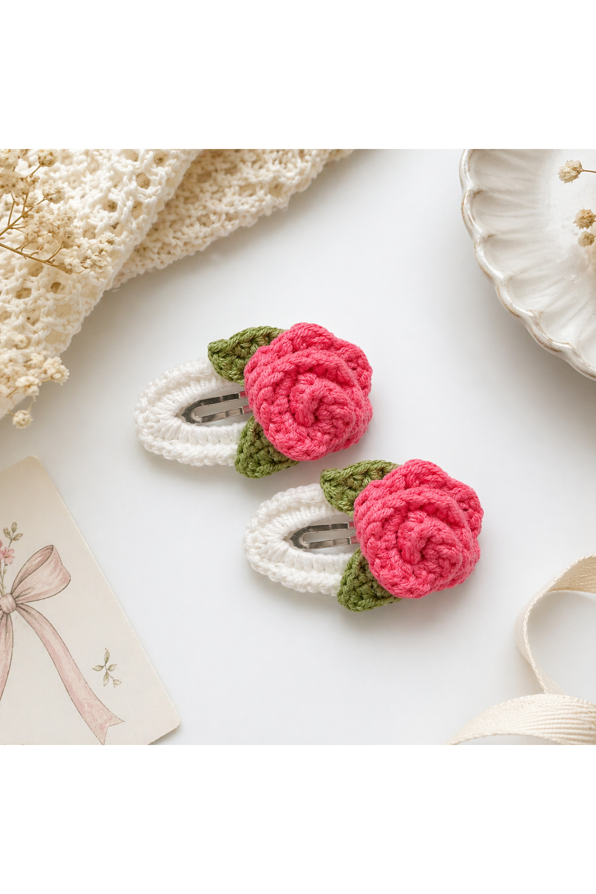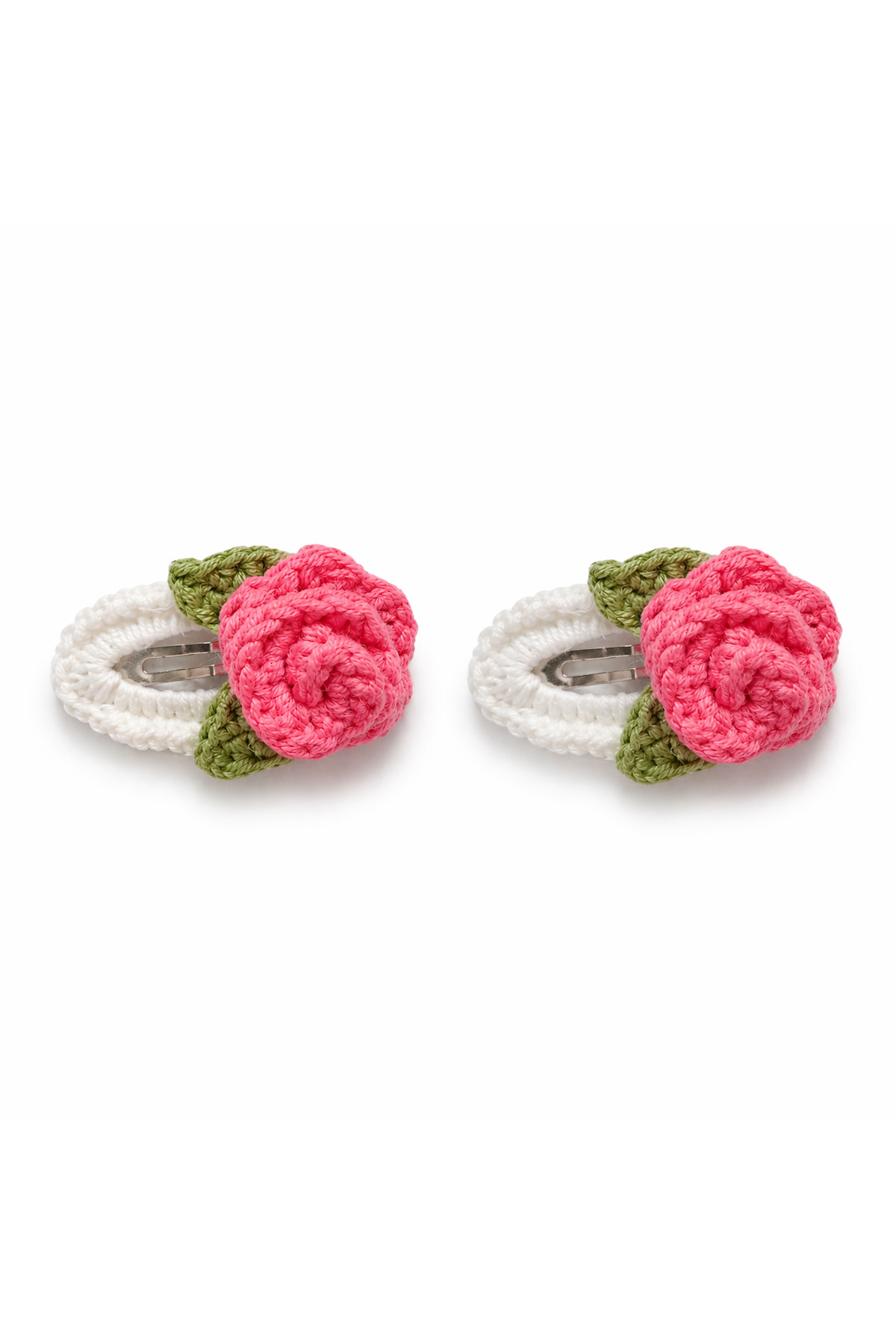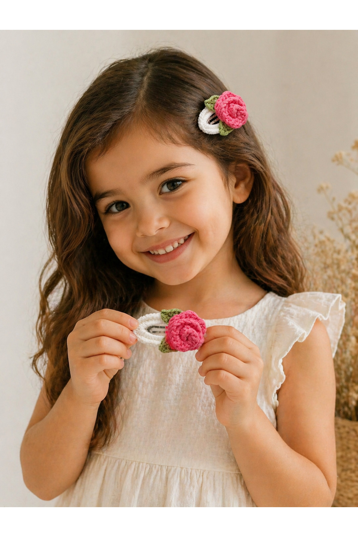 %100 Pamuk El Yapımı Örgü 2’li Çiçek Çıtçıt Toka – Bebek & Kız Çocuk Saç Aksesuarı