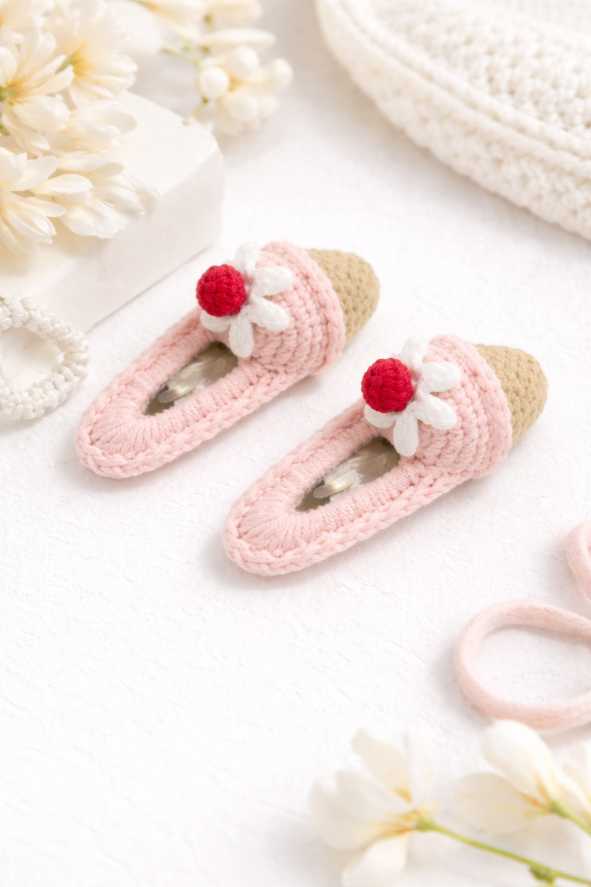 %100 Pamuk El Yapımı Örgü 2’li Çıtçıt Toka – Bebek & Kız Çocuk Saç Aksesuarı