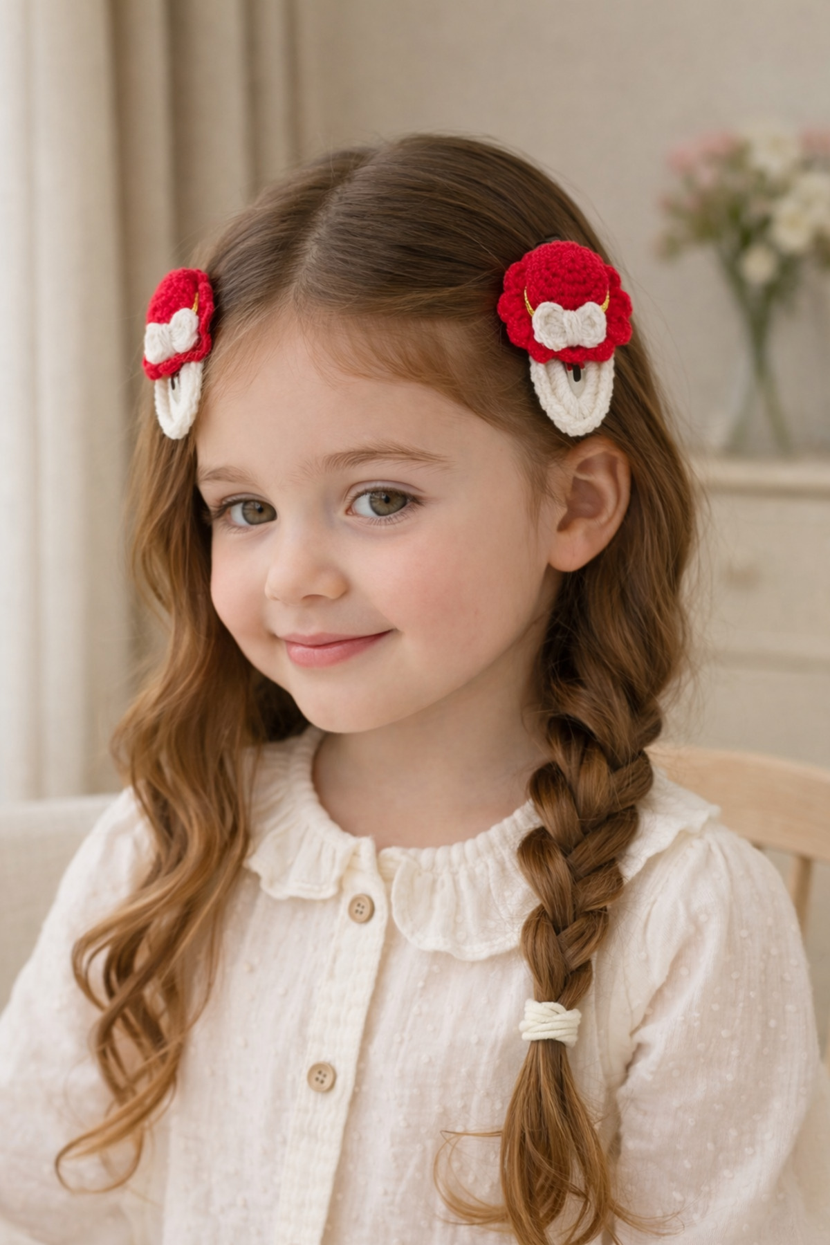 %100 Pamuk El Yapımı Örgü 2’li Çıtçıt Toka – Bebek & Kız Çocuk Saç Aksesuarı