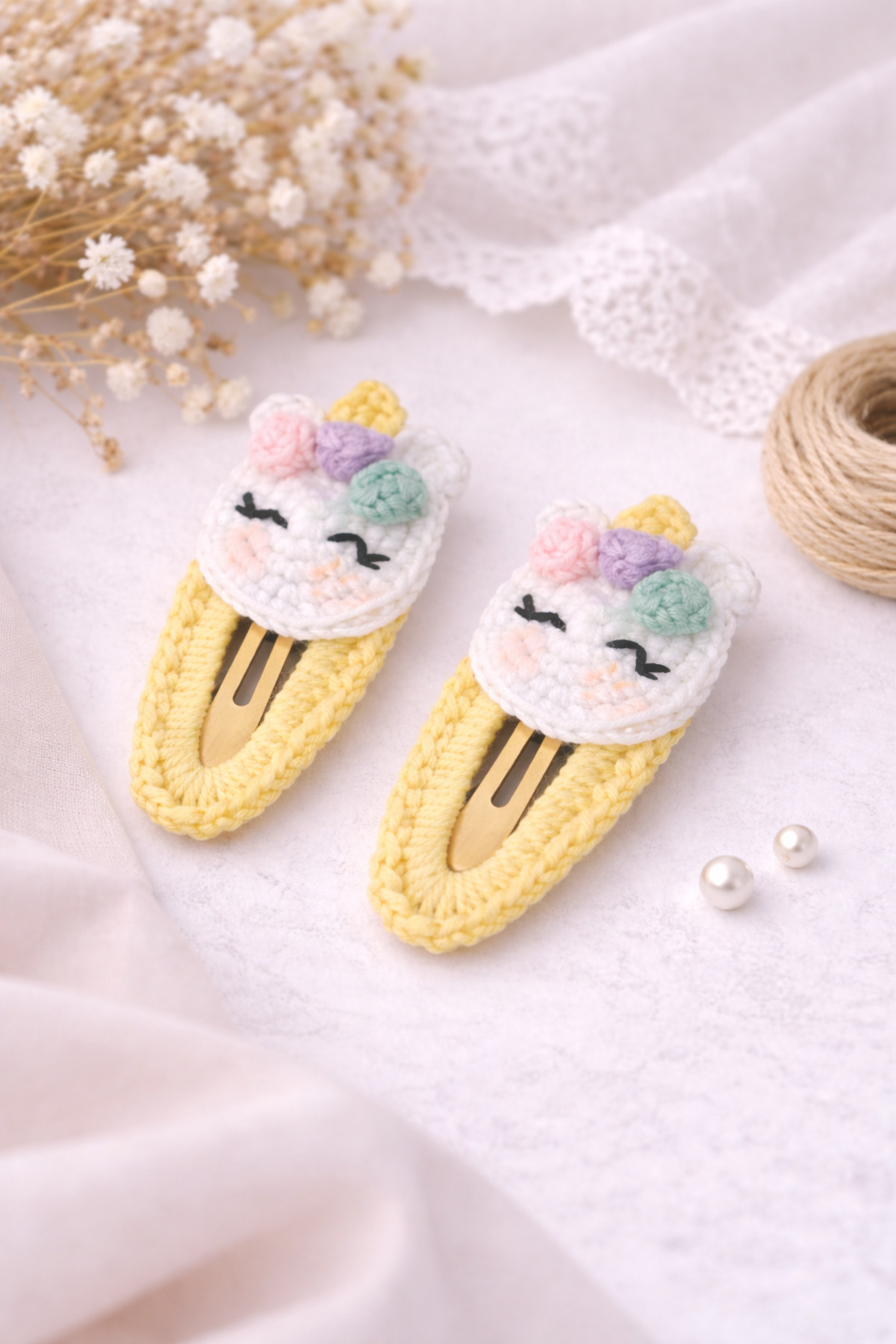 %100 Pamuk El Yapımı Örgü 2’li Çıtçıt Toka – Bebek & Kız Çocuk Saç Aksesuarı