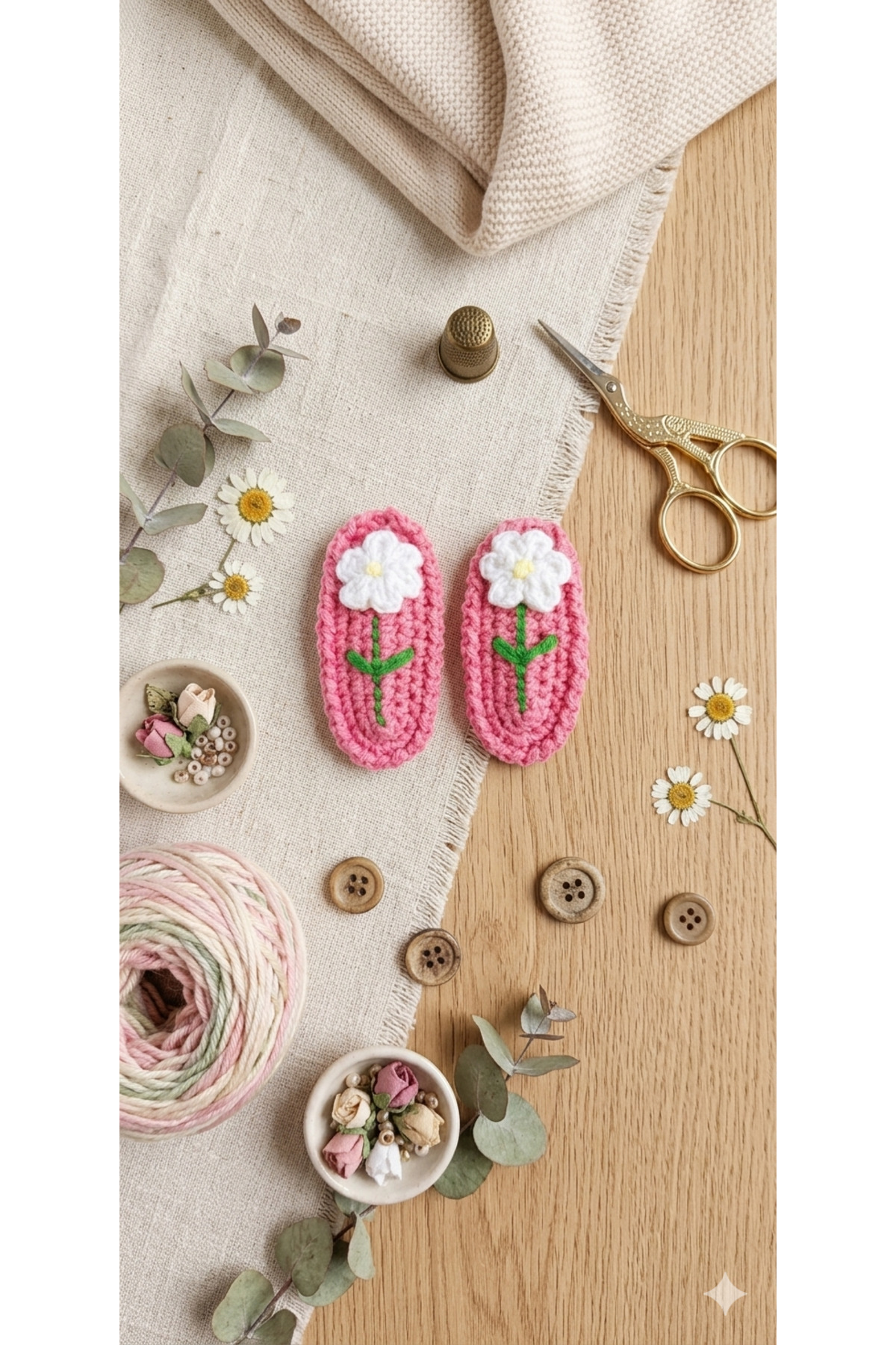 %100 Pamuk El Yapımı Örgü 2’li Çıtçıt Toka – Bebek & Kız Çocuk Saç Aksesuarı