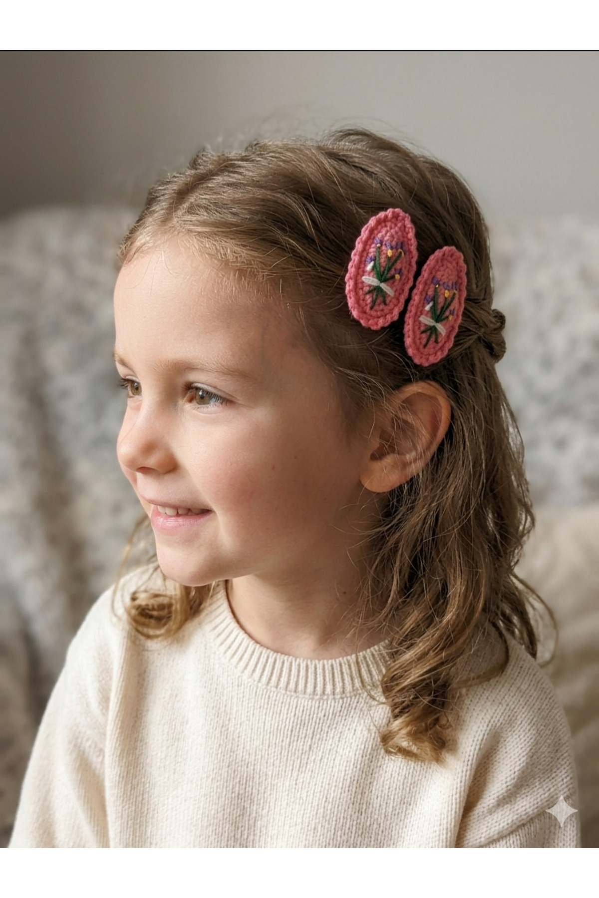%100 Pamuk El Yapımı Örgü 2’li Çıtçıt Toka – Bebek & Kız Çocuk Saç Aksesuarı