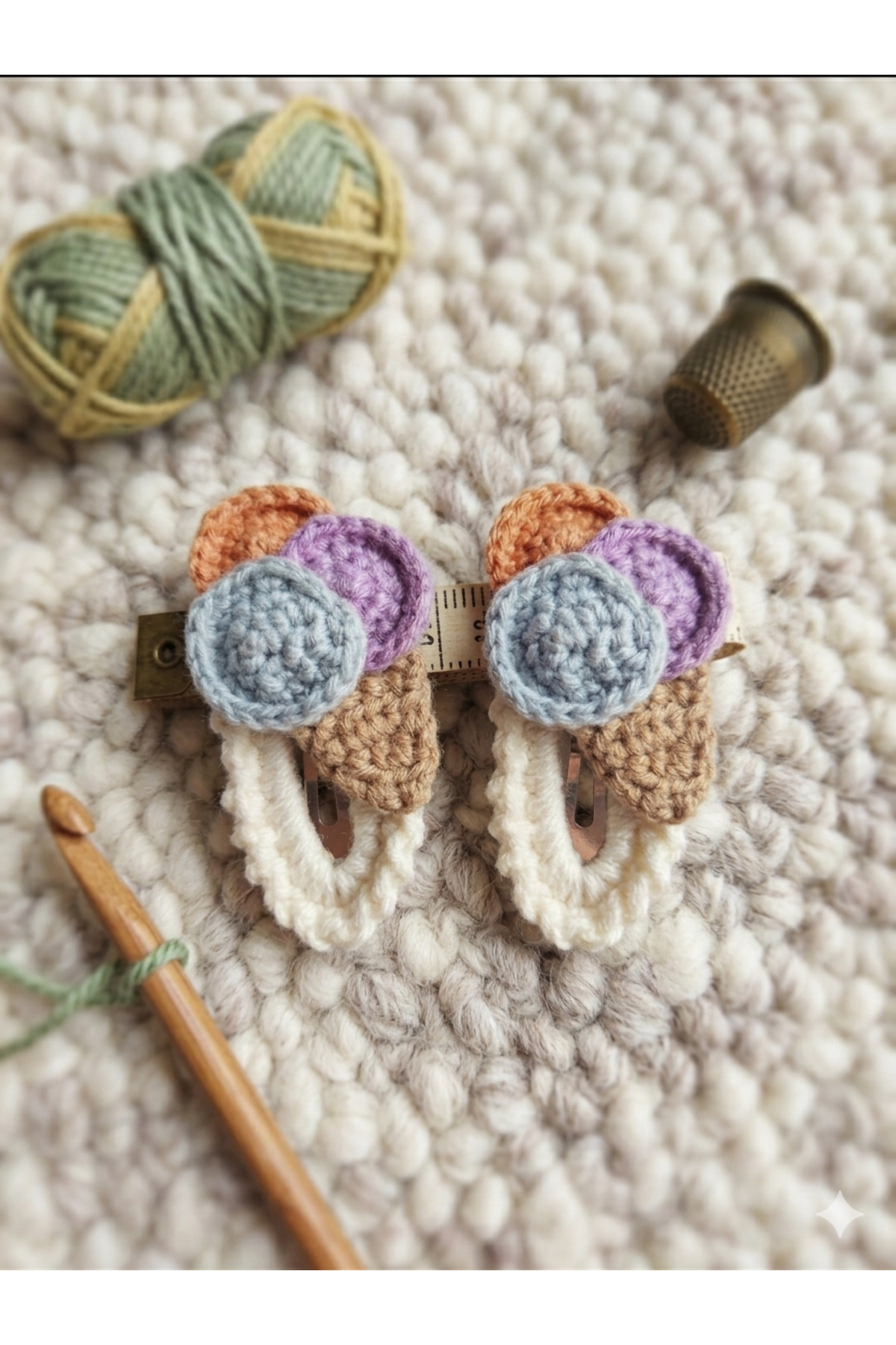 %100 Pamuk El Yapımı Örgü 2’li Çıtçıt Toka – Bebek & Kız Çocuk Saç Aksesuarı