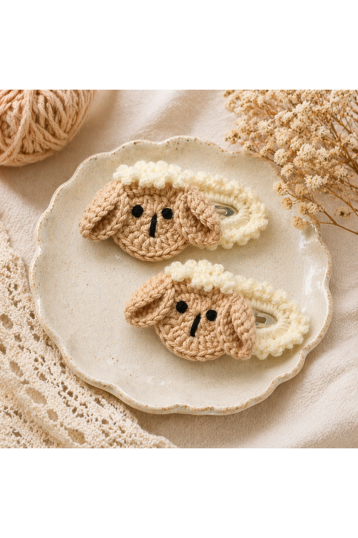 %100 Pamuk El Yapımı Örgü 2’li Çıtçıt Toka – Bebek & Kız Çocuk Saç Aksesuarı
