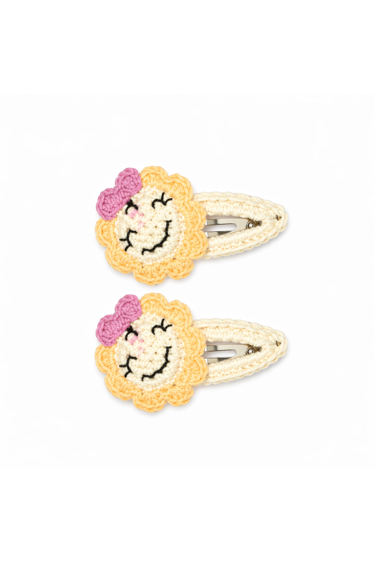 %100 Pamuk El Yapımı Örgü 2’li Güneş Çıtçıt Toka – Bebek & Kız Çocuk Saç Aksesuarı