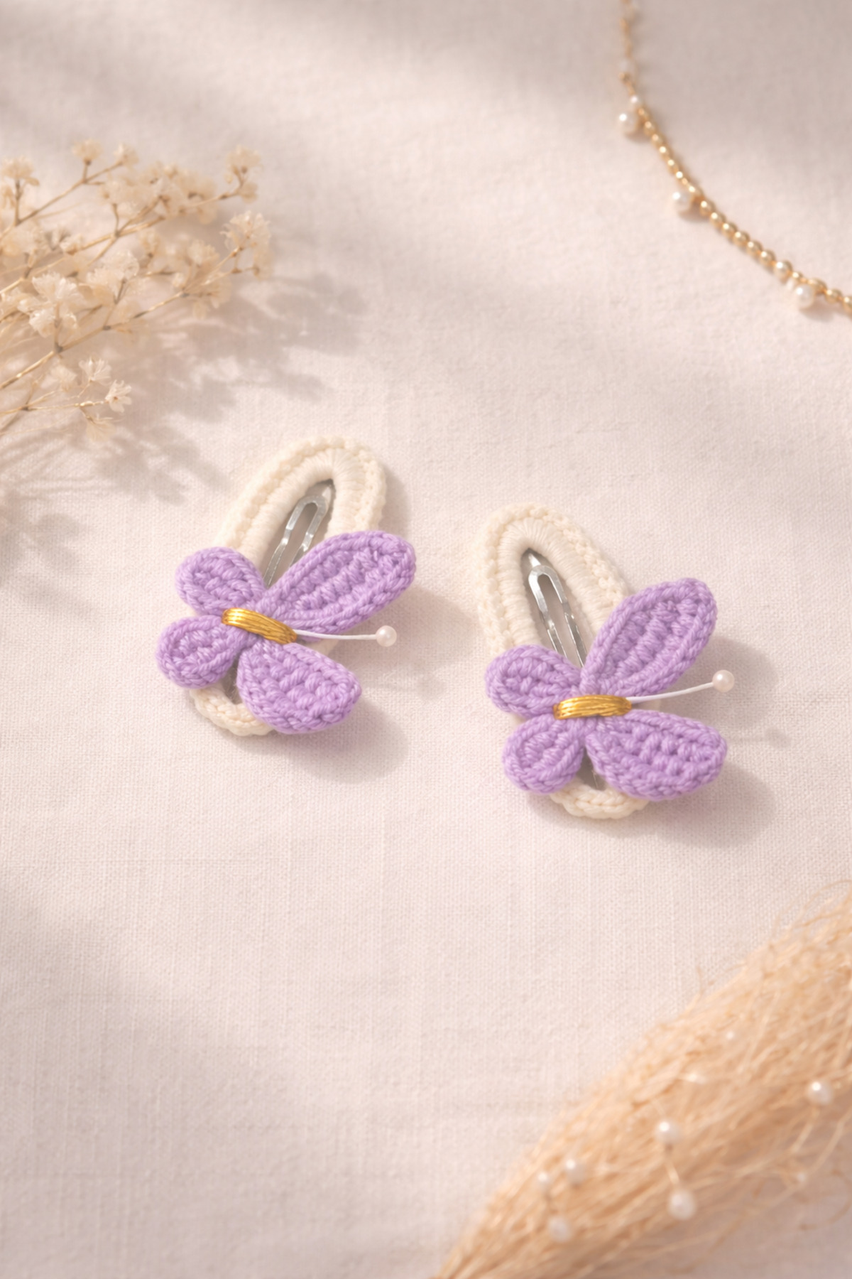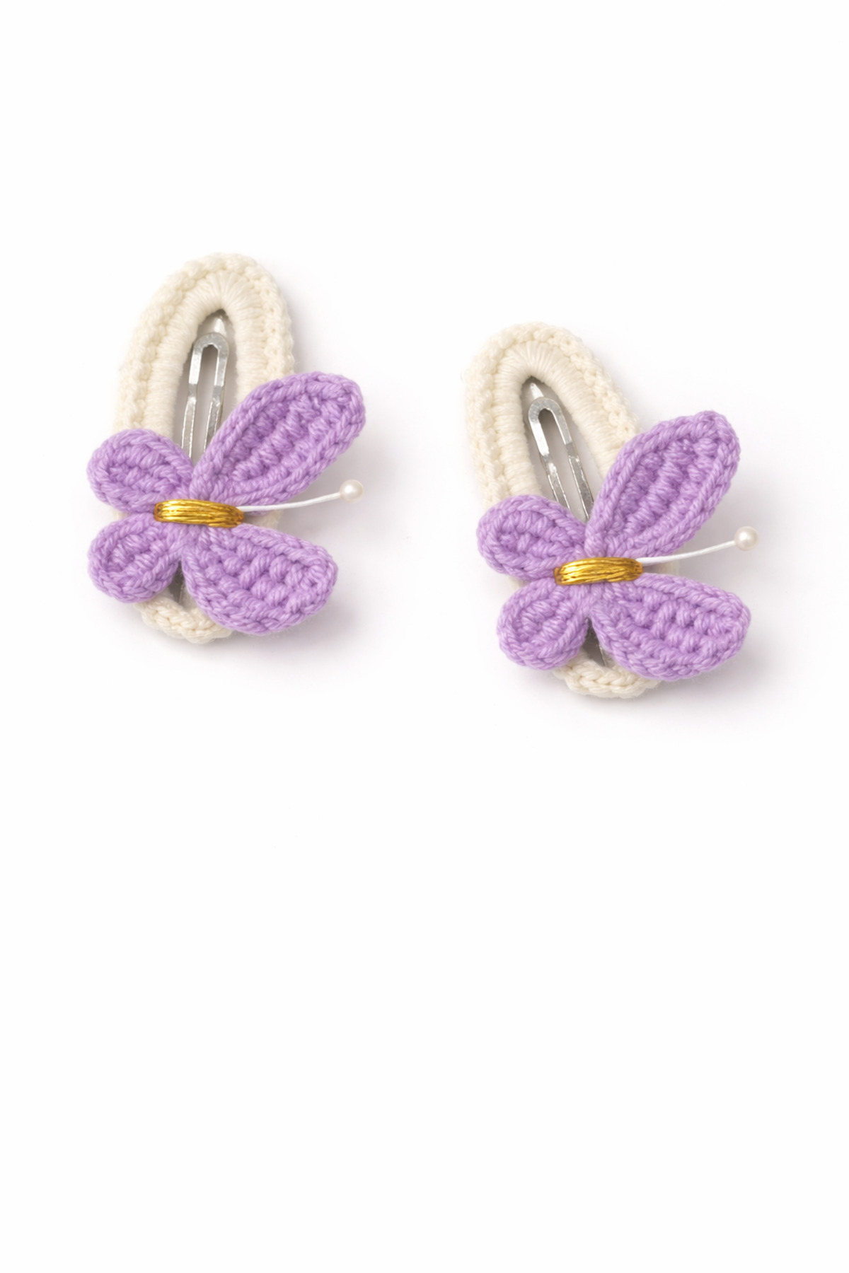 %100 Pamuk El Yapımı Örgü 2’li Kelebek Çıtçıt Toka – Bebek & Kız Çocuk Saç Aksesuarı