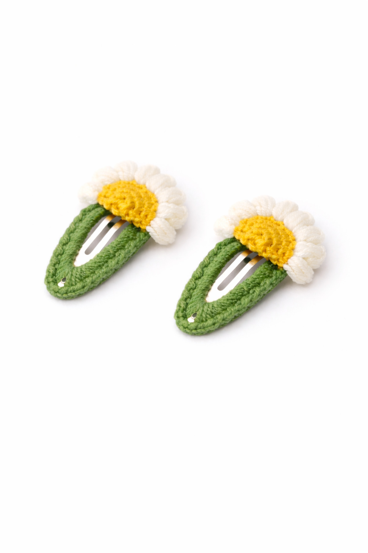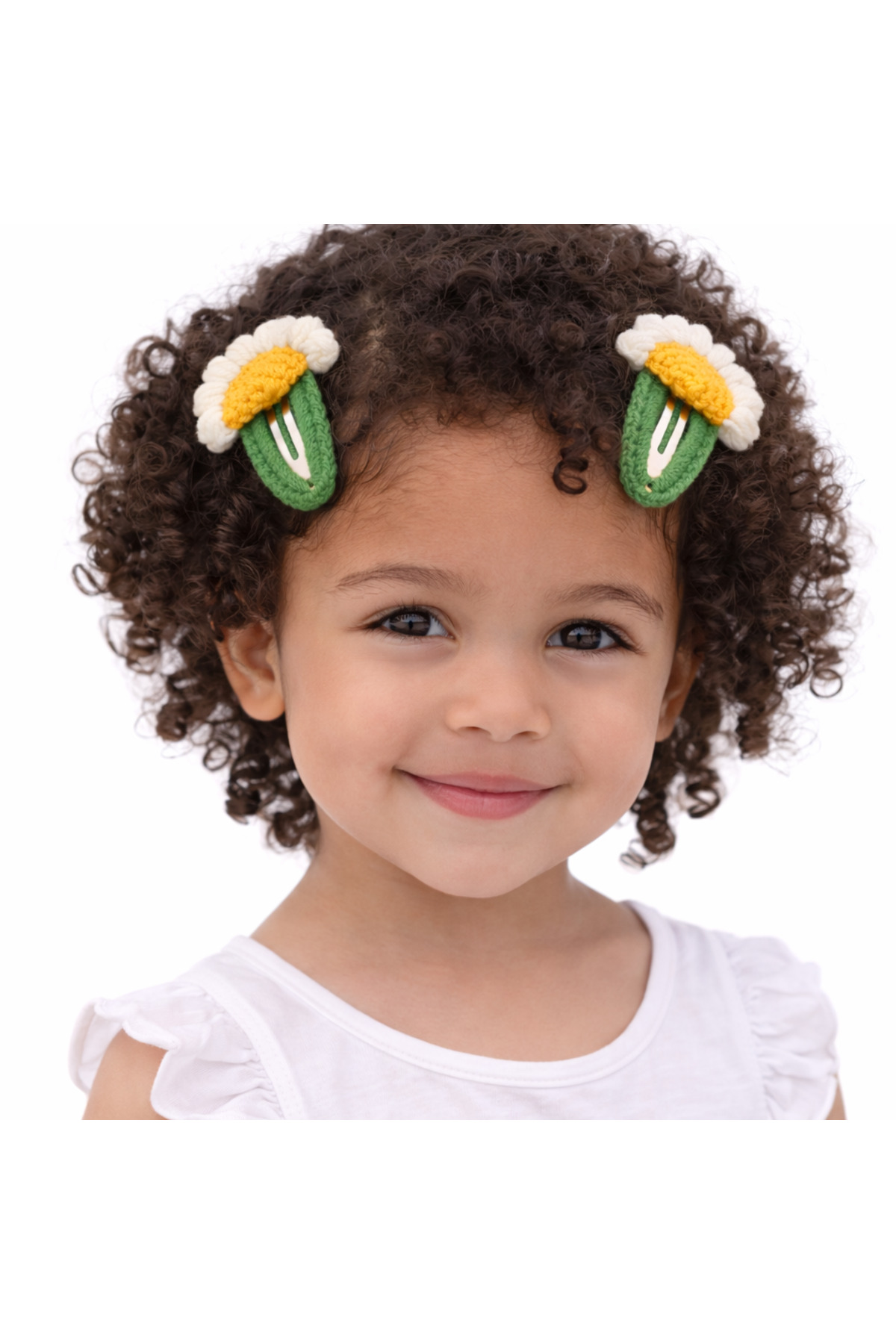 %100 Pamuk El Yapımı Örgü 2’li Papatya Çıtçıt Toka – Bebek & Kız Çocuk Saç Aksesuarı