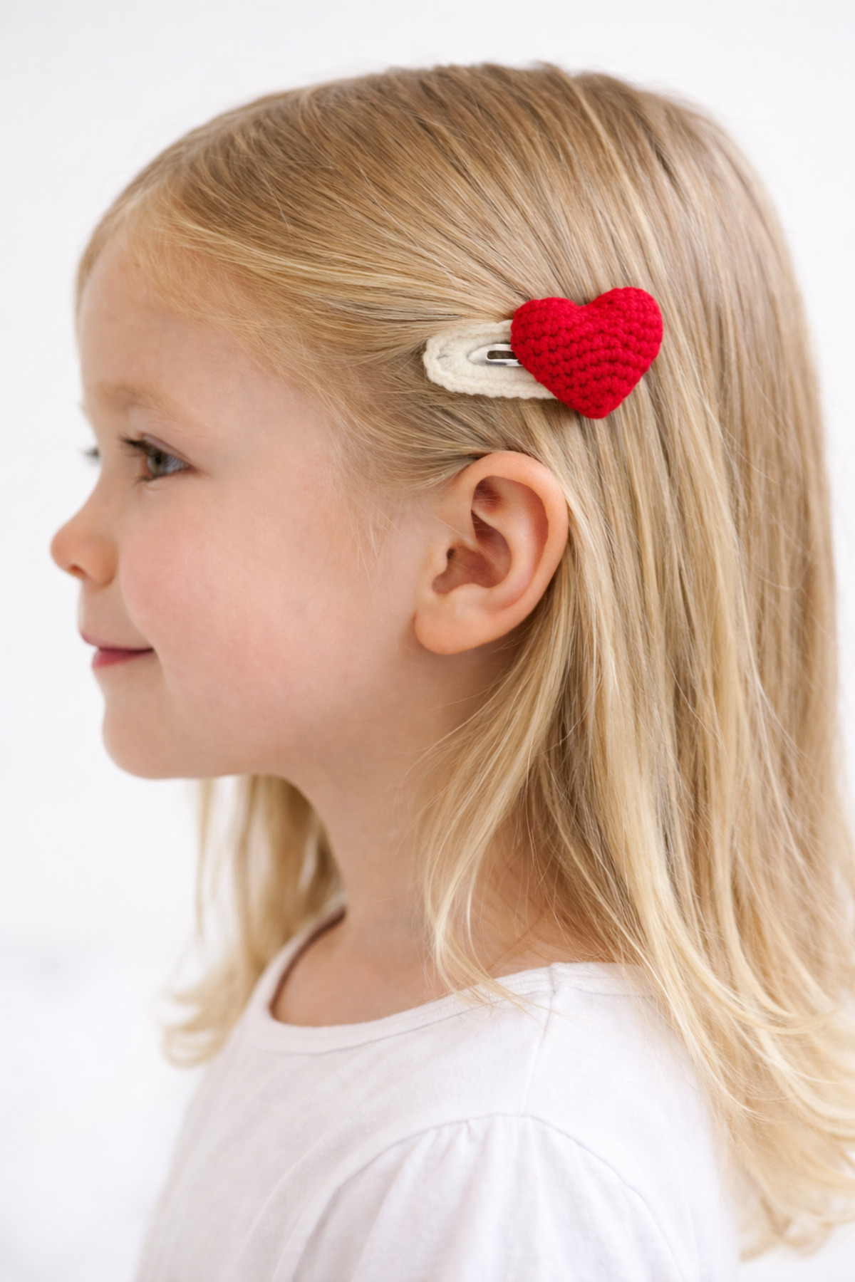 %100 Pamuk El Yapımı Örgü Kalp Çıtçıt Toka – Bebek & Kız Çocuk Saç Aksesuarı