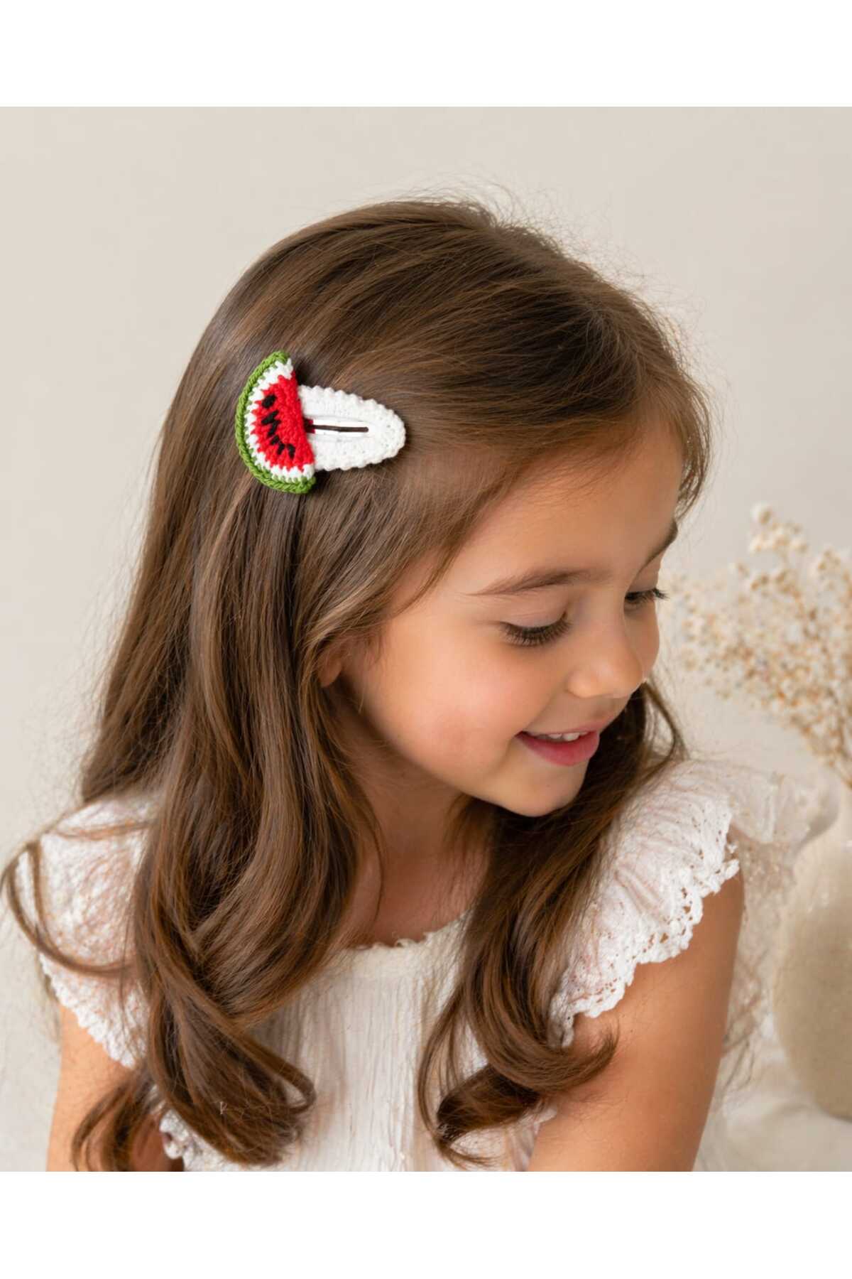 %100 Pamuk El Yapımı Örgü Karpuz Çıtçıt Toka – Bebek & Kız Çocuk Saç Aksesuarı