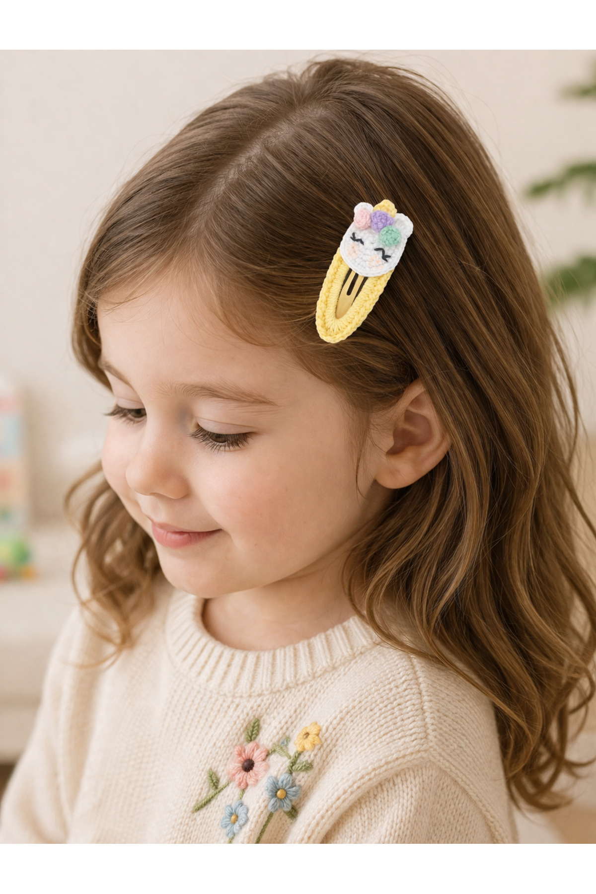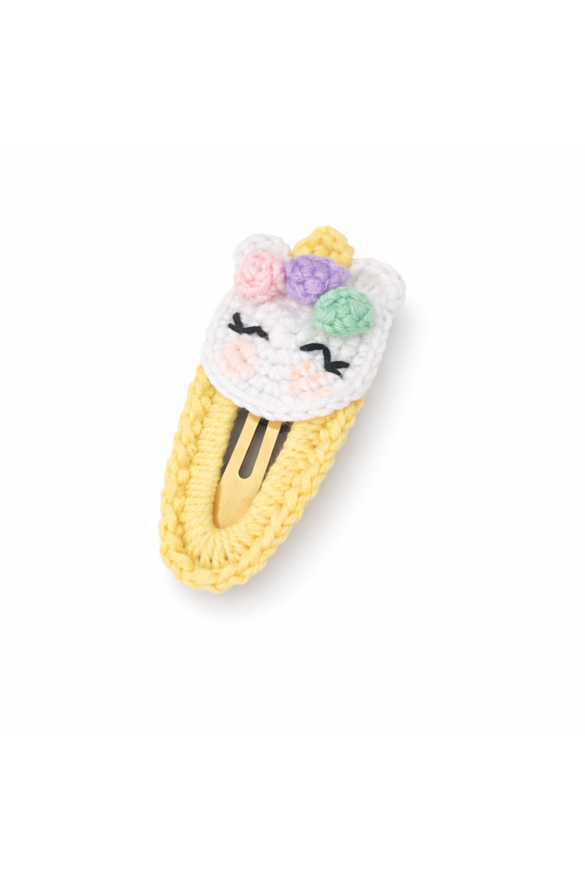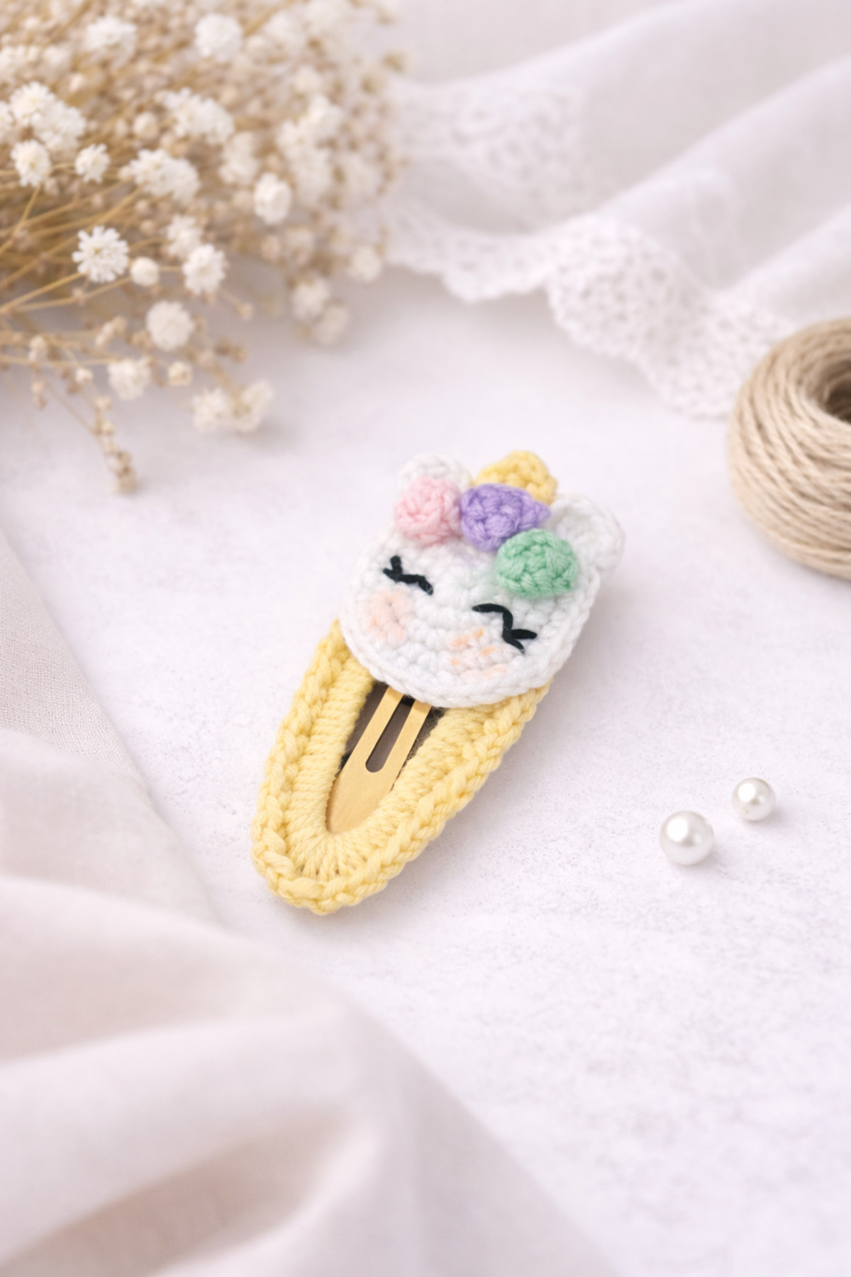 %100 Pamuk El Yapımı Örgü Tekli Çıtçıt Toka – Bebek & Kız Çocuk Saç Aksesuarı
