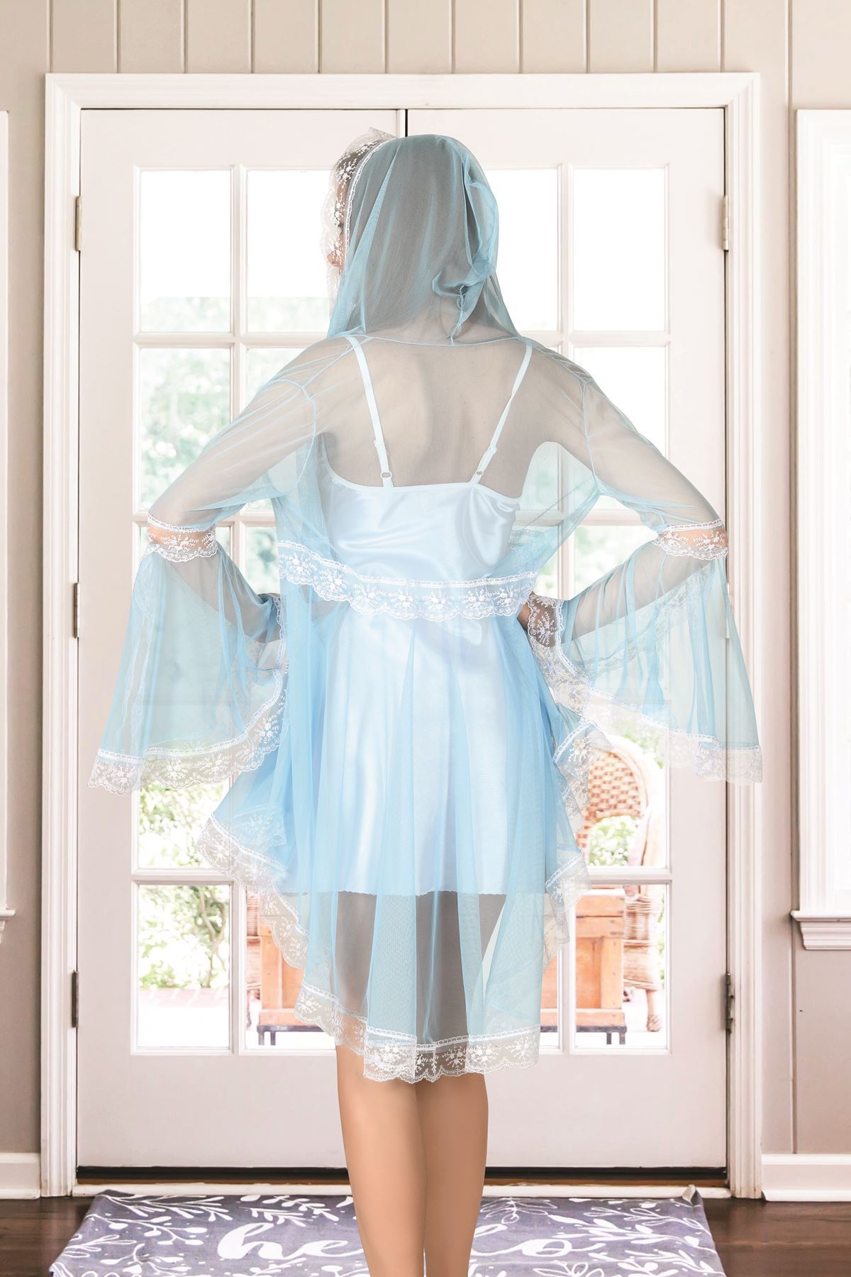 Beyaz Turkuaz Tül Dantelli Sabahlık & Gecelik Takım 2′ Li – 1478