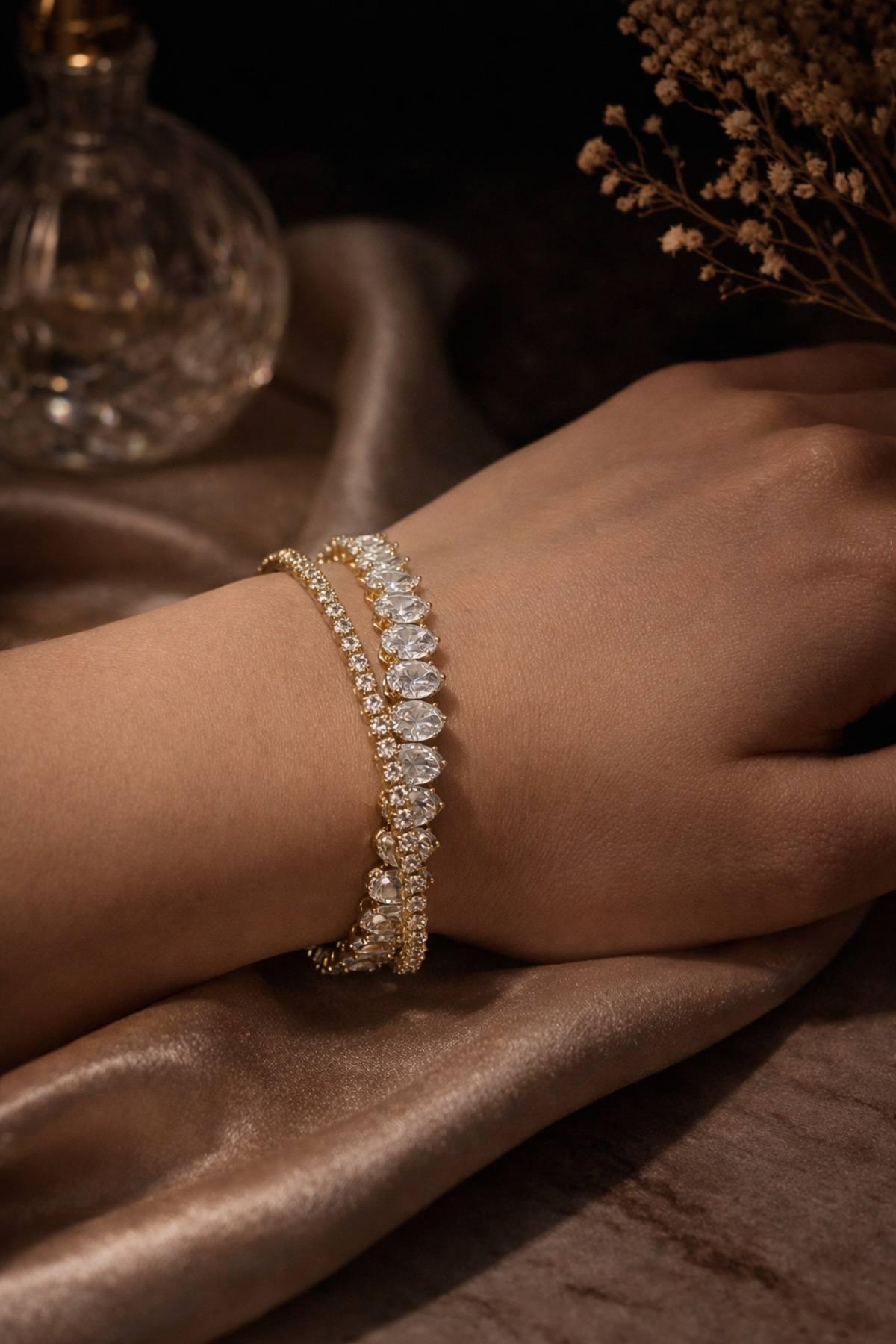 Çift Sıra Taşlı Tennis Bileklik Paslanmaz Çelik