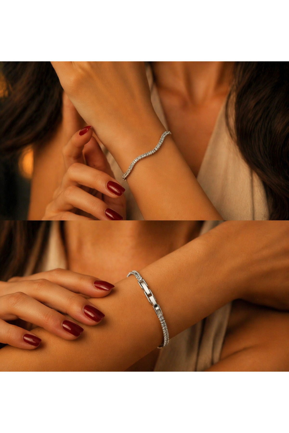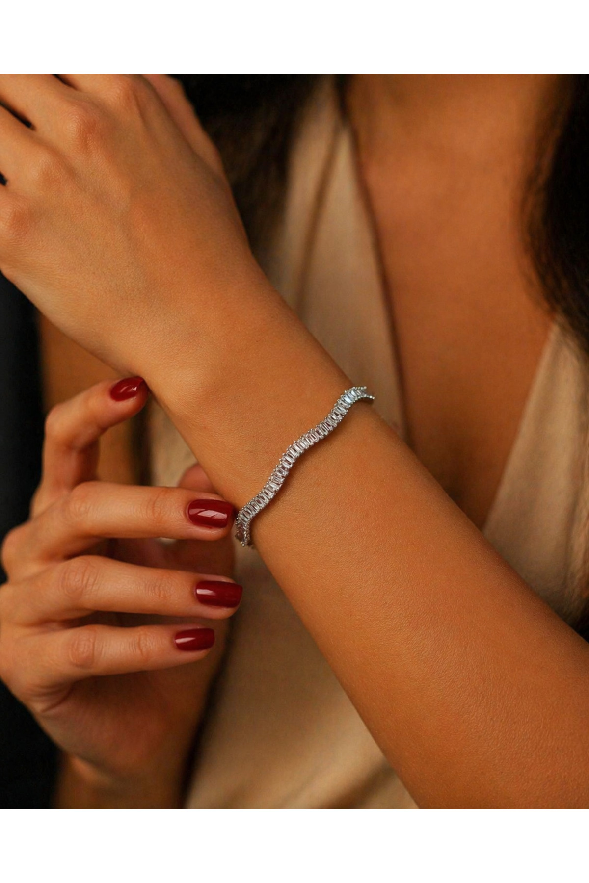 – Dalga model tasarımıyla dikkat çeken bu bileklik, modern ve şık bir görünüm sunar.; – Paslanmaz çelik materyali sayesinde uzun ömürlü kullanım ve dayanıklılık sağlar.; – Zarif taş detayları ile bileğinize ışıltı katar.; – Her türlü kıyafetle kolayca kombinlenebilir, günlük kullanım için idealdir.; – Paslanmaz çelik yapısı sayesinde suya ve neme karşı dayanıklıdır.;