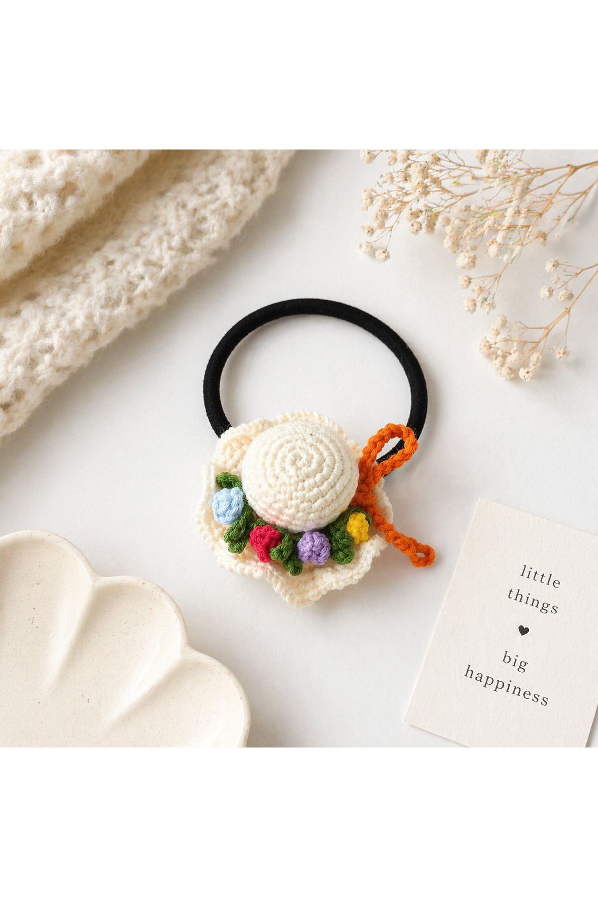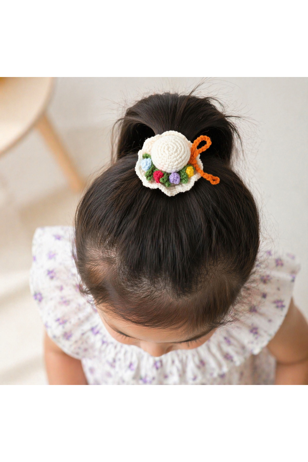 El Yapımı %100 Pamuk Kız Çocuk Bağlama Toka Lastikli Şapka Motifli Saç Aksesuarı