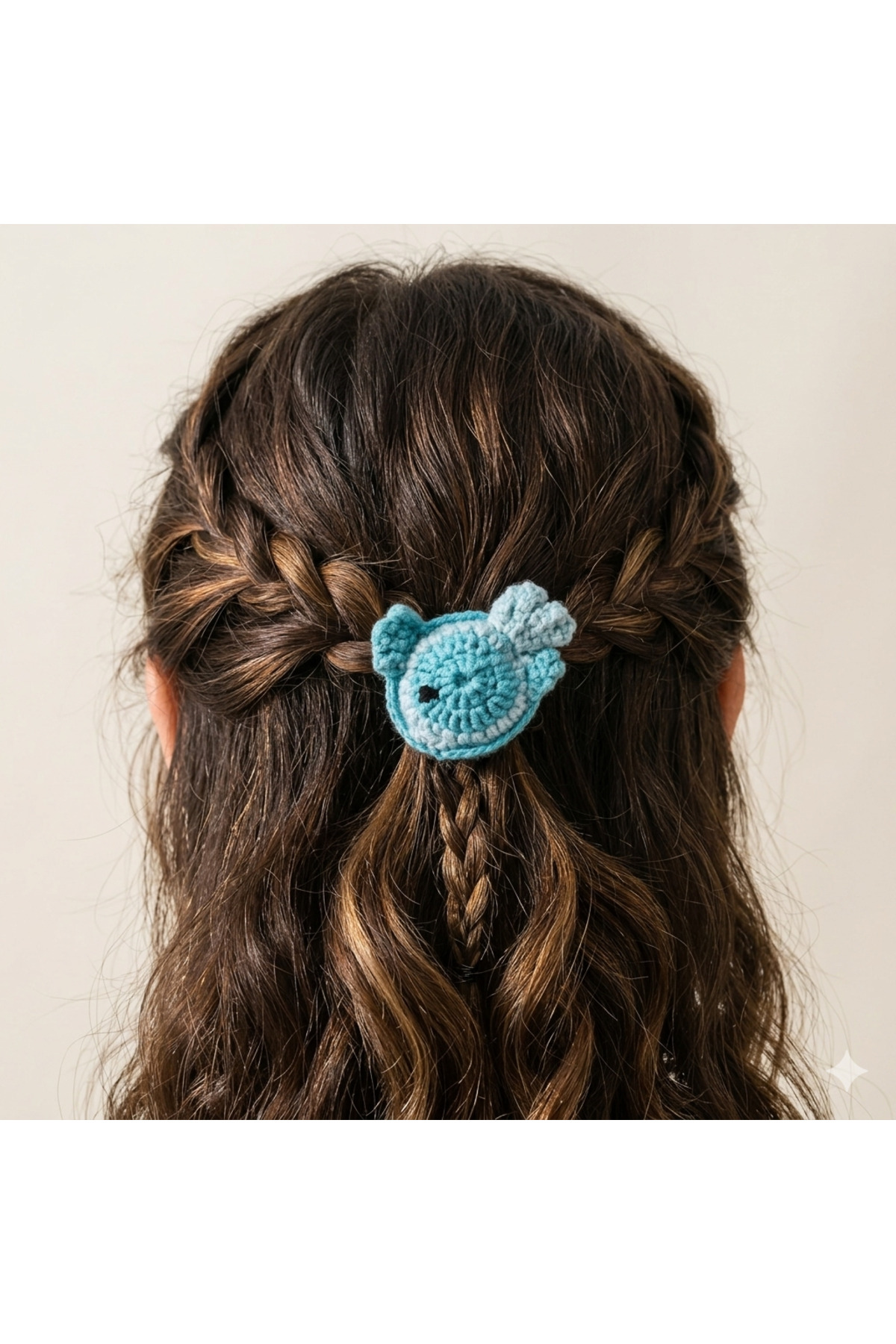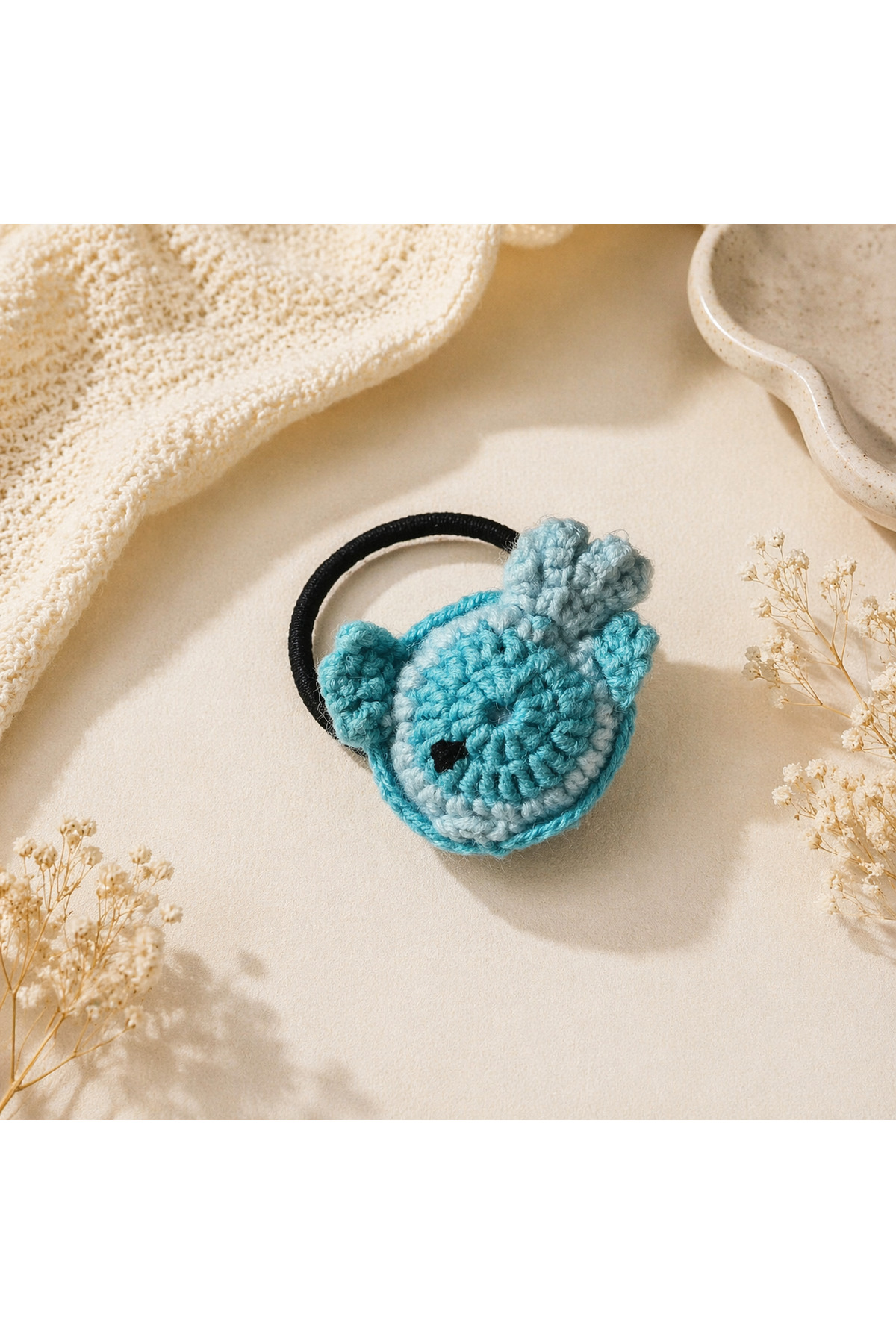 El Yapımı %100 Pamuk Kız Çocuk Mavi Bağlama Toka Lastikli Saç Aksesuarı