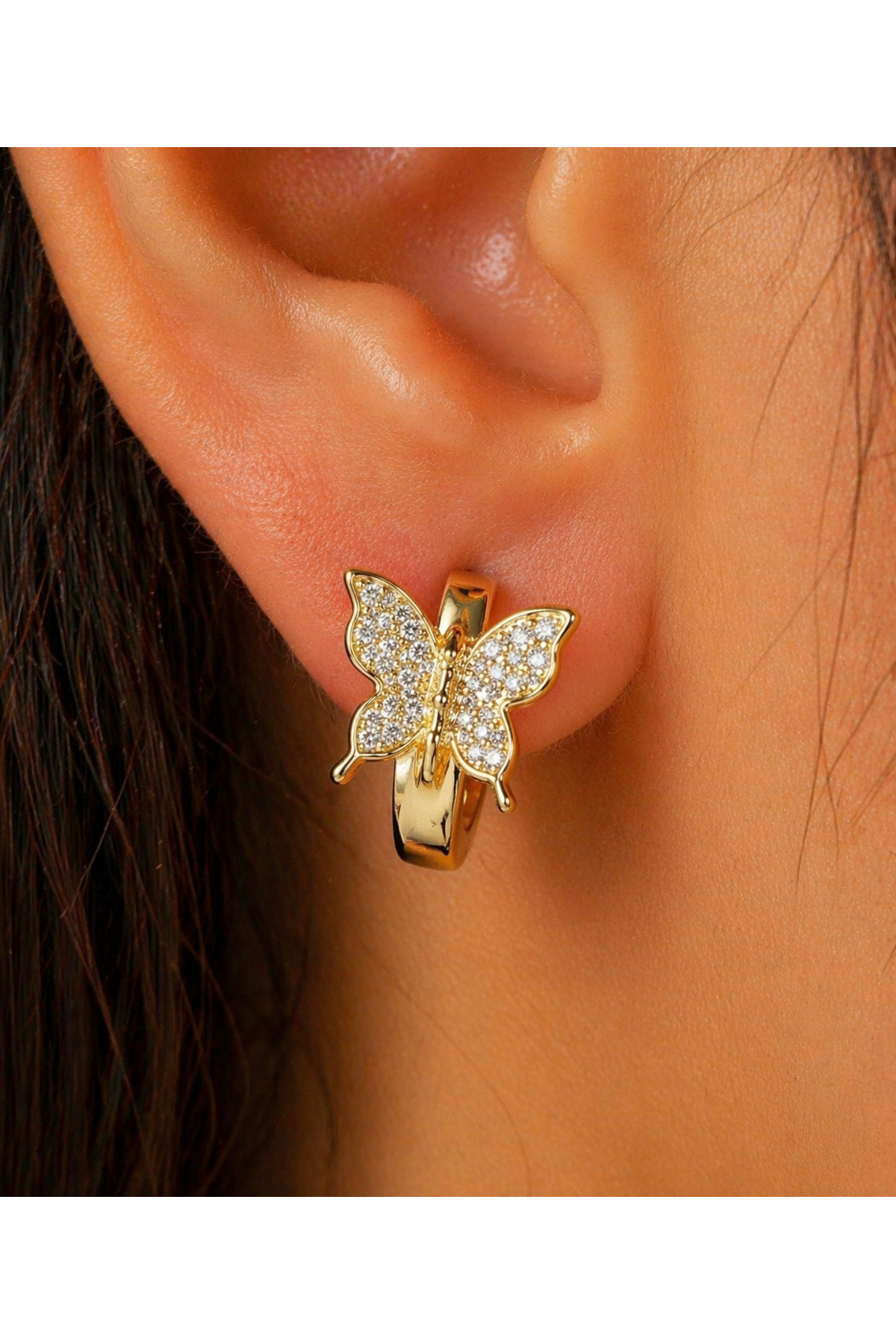 Gold Işıltı Kelebek Halka Küpe Paslanmaz Çelik