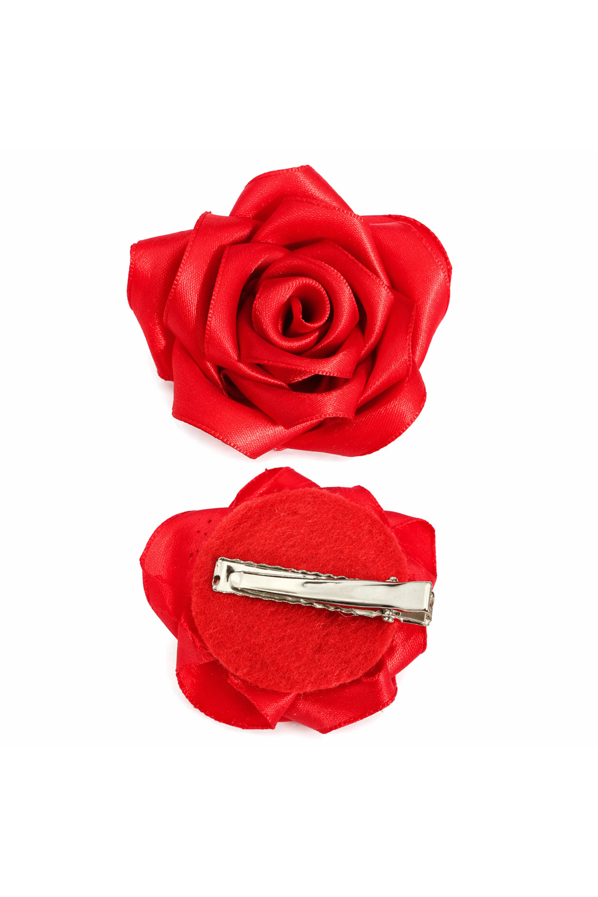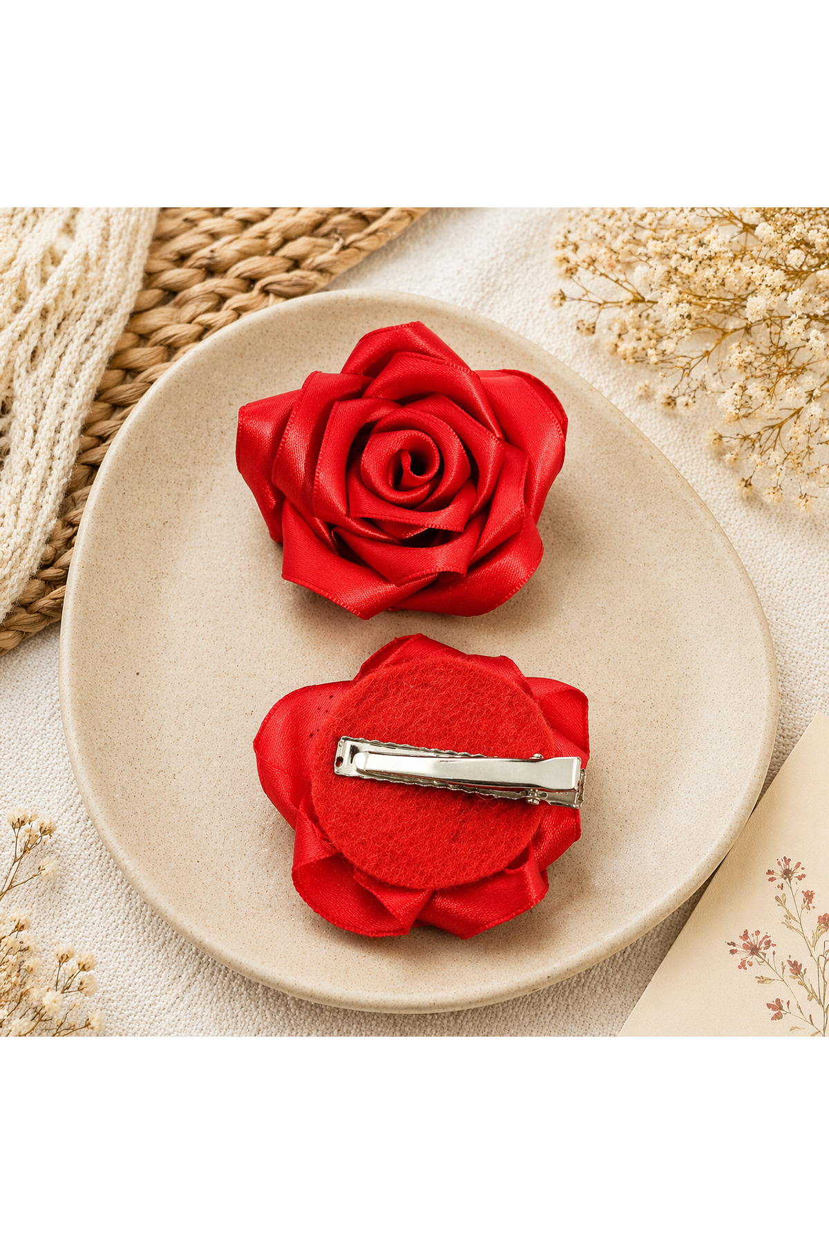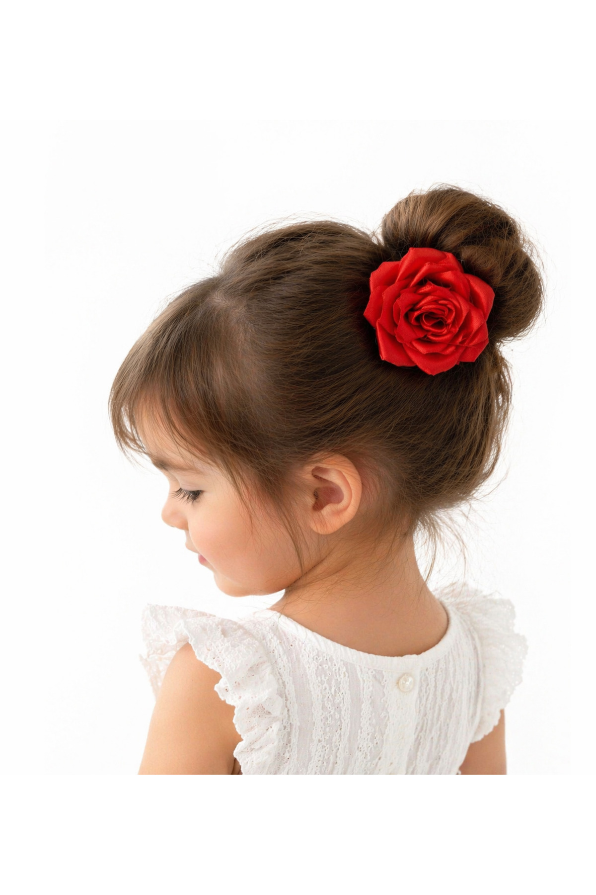 Kız Çocuk Kırmızı Gül Toka El Yapımı Kurdele Klipsli Özel Gün Saç Aksesuarı