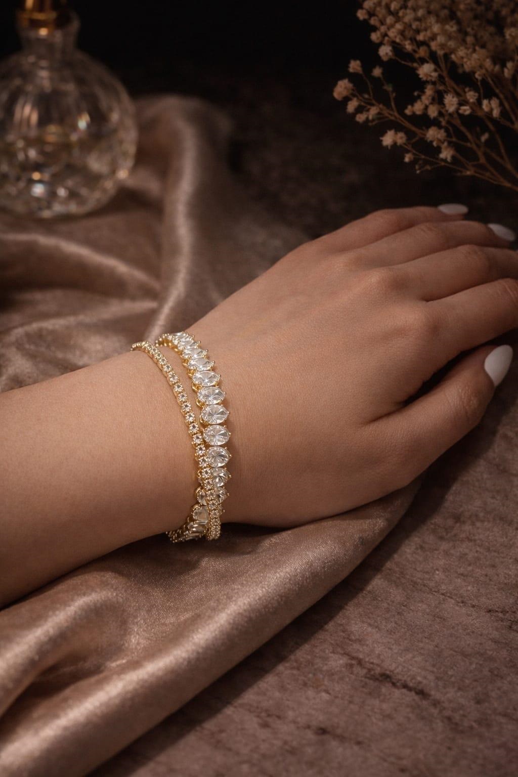 Çift sıra dizilimiyle klasik tennis bilekliklere modern bir yorum katan bu parça, minimal ama etkileyici görünümüyle dikkat çeker. Tek başına kullanıldığında zarif bir stil yaratırken, diğer bilekliklerle kombinlendiğinde trend bir görünüm sağlar.