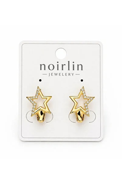 Noirlin Jewelery Taşlı Yıldız Halka Küpe Paslanmaz Çelik Gold