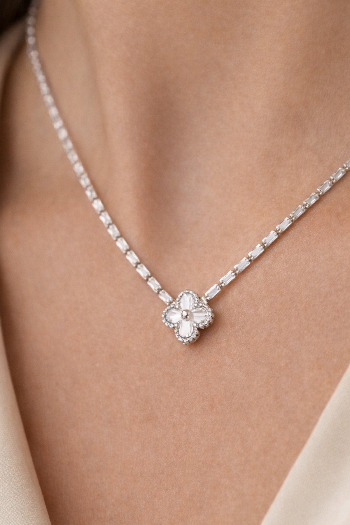 Yonca Baget Taşlı Paslanmaz Çelik Kolye